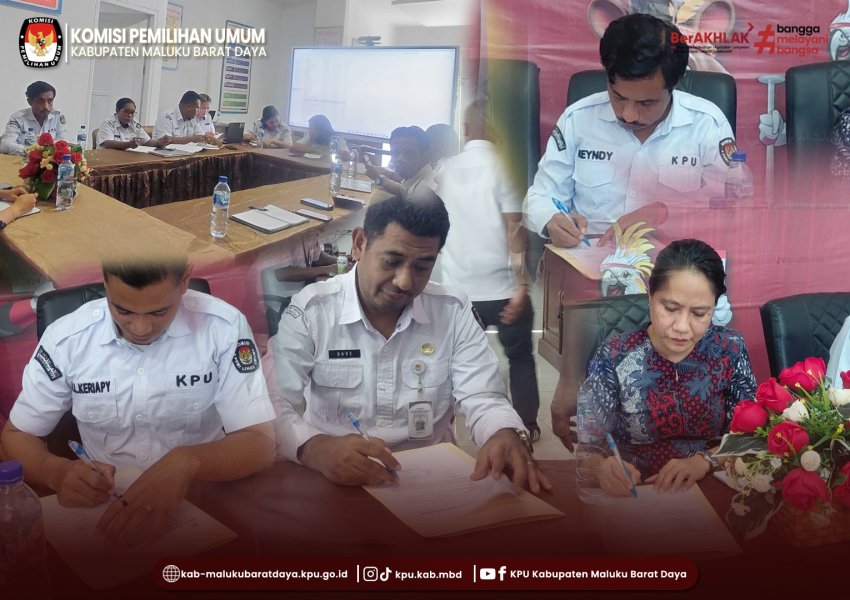 Tiakur-MBD, Dalam rangka mewujudkan manajemen pemerintahan yang efektif, transparan dan akuntabel serta berorientasi hasil. Komisi Pemilihan Umum (KPU) Kabupaten Maluku Barat Daya melaksanakan kegiatan Penandatanganan Perjanjian Kinerja Tahun 2026, yang dilaksanakan pada Senin 09 Februari 2026 bertempat di ruang rapat KPU Kabupaten Maluku Barat Daya. Penandatanganan Perjanjian Kinerja ini merupakan tindak lanjut dari perencanaan kinerja tahunan yang bertujuan untuk memastikan ketercapaian sasaran strategis, program, dan kegiatan KPU Kabupaten Maluku Barat Daya sesuai dengan ketentuan peraturan perundang-undangan. Melalui perjanjian kinerja ini, setiap pejabat dan jajaran yang terlibat menyatakan kesanggupan untuk melaksanakan tugas dan fungsi secara efektif, efisien, transparan, serta akuntabel. Dengan dilaksanakannya kegiatan ini, diharapkan seluruh jajaran KPU Kabupaten Maluku Barat Daya Tahun 2026 memiliki kesamaan pemahaman dan tekad dalam meningkatkan kinerja organisasi, menjaga integritas lembaga, serta memberikan pelayanan terbaik kepada masyarakat guna mendukung terselenggaranya pemilihan umum yang berintegritas dan demokratis. Penandatanganan Perjanjian Kinerja dilaksanakan antara Ketua KPU Kabupaten Maluku Barat Daya dengan Sekretaris KPU Kabupaten Maluku Barat Daya, dan Sekretaris KPU Kabupaten Maluku Barat Daya dengan para Kepala Subbagian di Lingkungan KPU Kabupaten Maluku Barat Daya. Hadir dalam kegiatan ini, Ketua KPU Kabupaten Maluku Barat Daya, Yoma E. D. Naskay dan Anggota, Sekretaris KPU Kabupaten Maluku Barat Daya, Zadrak D. Thenu, Jajaran Pejabat Struktural dan Pejabat Fungsional serta staf sekretariat KPU Kabupaten Maluku Barat Daya.** Dokumen Perjanjian Kinerja Tahun 2026 Klik Disini ....