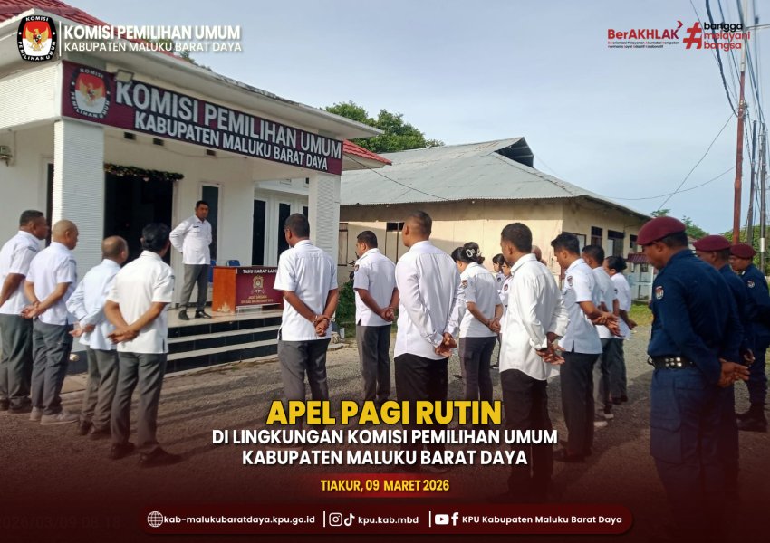 Tiakur, MBD — Komisi Pemilihan Umum Kabupaten Maluku Barat Daya melaksanakan apel pagi rutin yang dipimpin oleh Sekretaris KPU Kabupaten Maluku Barat Daya, Zadrak D. Thenu selaku pembina apel. Kegiatan yang berlangsung di halaman kantor KPU Kabupaten Maluku Barat Daya ini diikuti oleh seluruh jajaran sekretariat dan staf, pada Senin, (09/03/2026). Dalam amanatnya, pembina apel menekankan pentingnya menjaga kedisiplinan dan kekompakan sebagai landasan utama dalam menjalankan tugas dan tanggung jawab kelembagaan. Disiplin, menurut beliau, bukan hanya tentang ketepatan waktu, tetapi juga mencerminkan komitmen, integritas, serta konsistensi dalam bekerja sesuai dengan peraturan dan prosedur yang berlaku. (Pembina Apel : Sekretaris KPU Kabupaten Maluku Barat Daya, Zadrak D.Thenu, SH) Selain itu, kekompakan antarpegawai dinilai menjadi faktor penting dalam menciptakan lingkungan kerja yang harmonis dan produktif. Dengan kerja sama yang solid, setiap tantangan dalam pelaksanaan tugas dapat dihadapi secara efektif dan profesional. Apel pagi ini menjadi momentum untuk memperkuat semangat kebersamaan serta meningkatkan kualitas kinerja dalam mendukung tugas-tugas kepemiluan di Kabupaten Maluku Barat Daya. Seluruh jajaran diharapkan terus menjaga integritas, profesionalisme, dan tanggung jawab dalam memberikan pelayanan terbaik kepada masyarakat. Setelah apel kemudian dilanjutkan dengan Ibadah Buka Usbu kerja mingguan. Suasana ibadah terasa penuh sukacita dan kekeluargaan, diiringi semangat seluruh pegawai yang hadir untuk memulai kerja dengan firman Tuhan sebagai sumber kekuatan dan pengharapan. Melalui ibadah ini, diharapkan semangat kerja seluruh staf semakin dijiwai oleh nilai-nilai iman, pengharapan, dan kasih dalam melayani Tuhan dan sesama. …………………………………………………………… Narasi : Syarifuddin Rumakey, ST Editor : Pieter J.A. Lokwaty, S.Sos Dok : Edyson C. Th. Rupilele ....