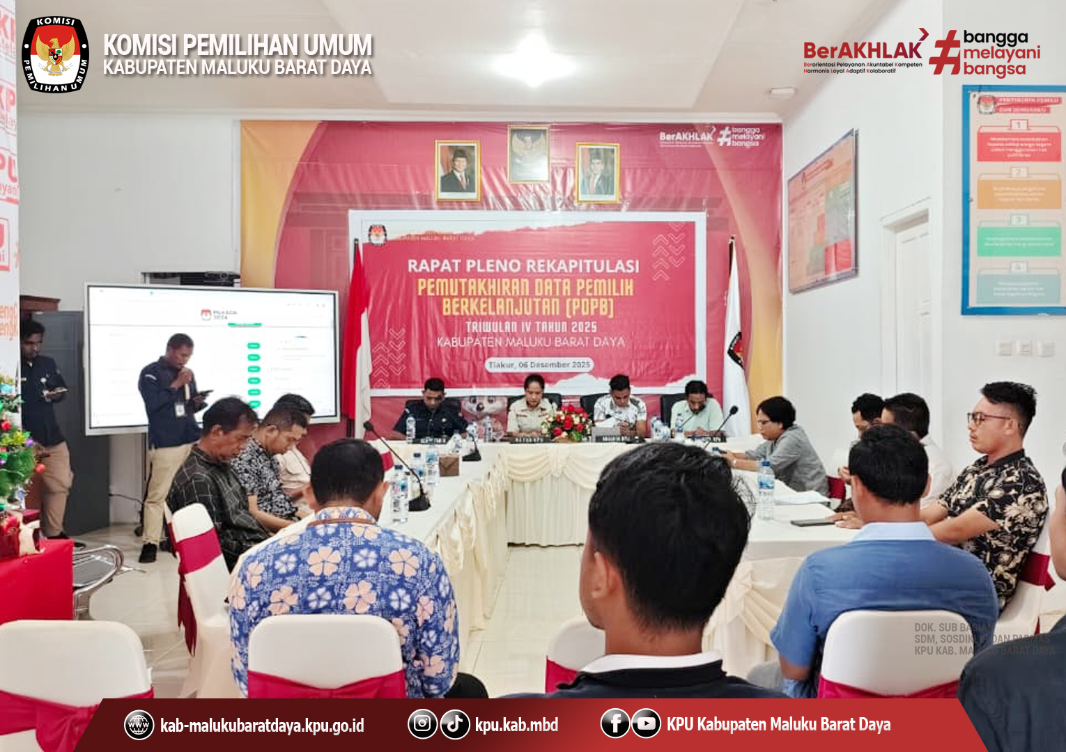 Tiakur-MBD ; Komisi Pemilihan Umum Kabupaten Maluku Barat Daya melaksanakan Rapat Pleno Terbuka Rekapitulasi Pemutakhiran Data Pemilih Berkelanjutan (PDPB) Triwulan IV (Empat) Tahun 2025 pada Sabtu, 06 Desember 2025 bertempat di Kantor KPU Kabupaten Maluku Barat Daya.